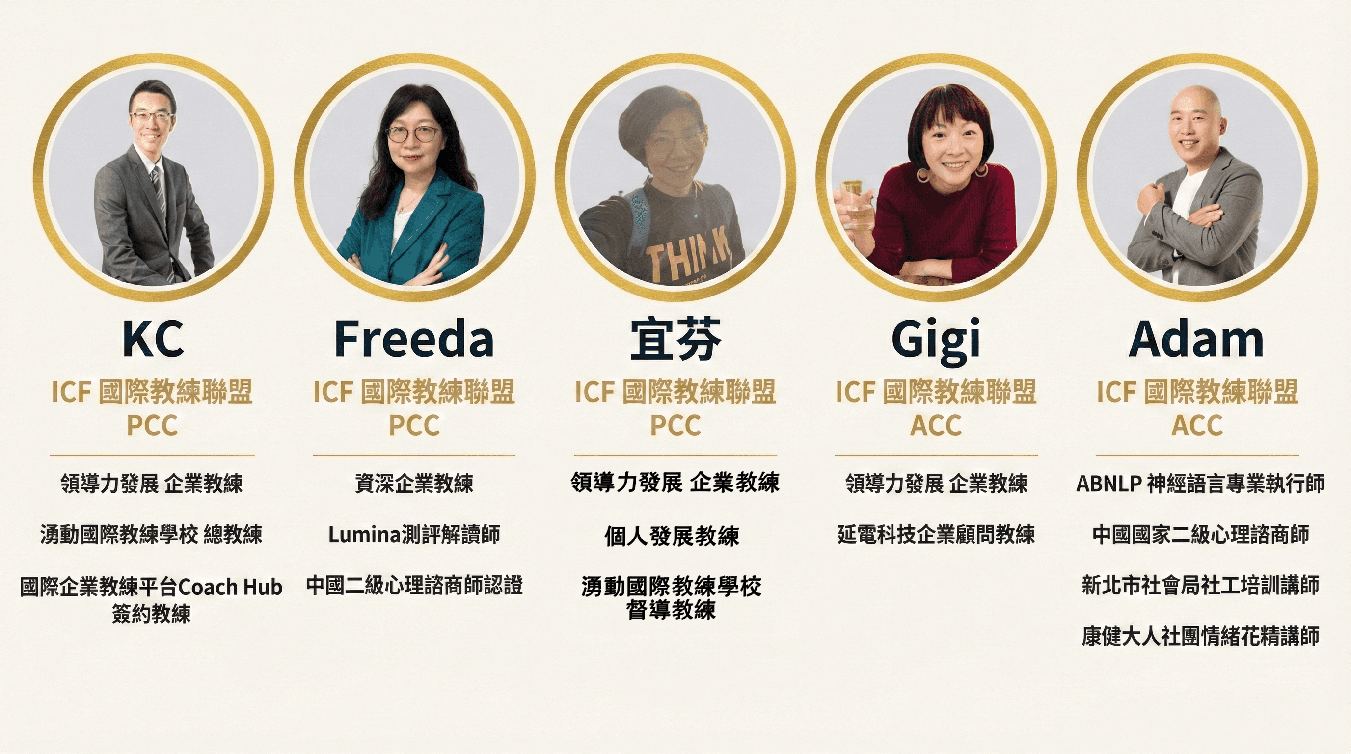 資深教練團: Adam, Freeda, Gigi, KC, Ray, 宜芬, 乃榮
